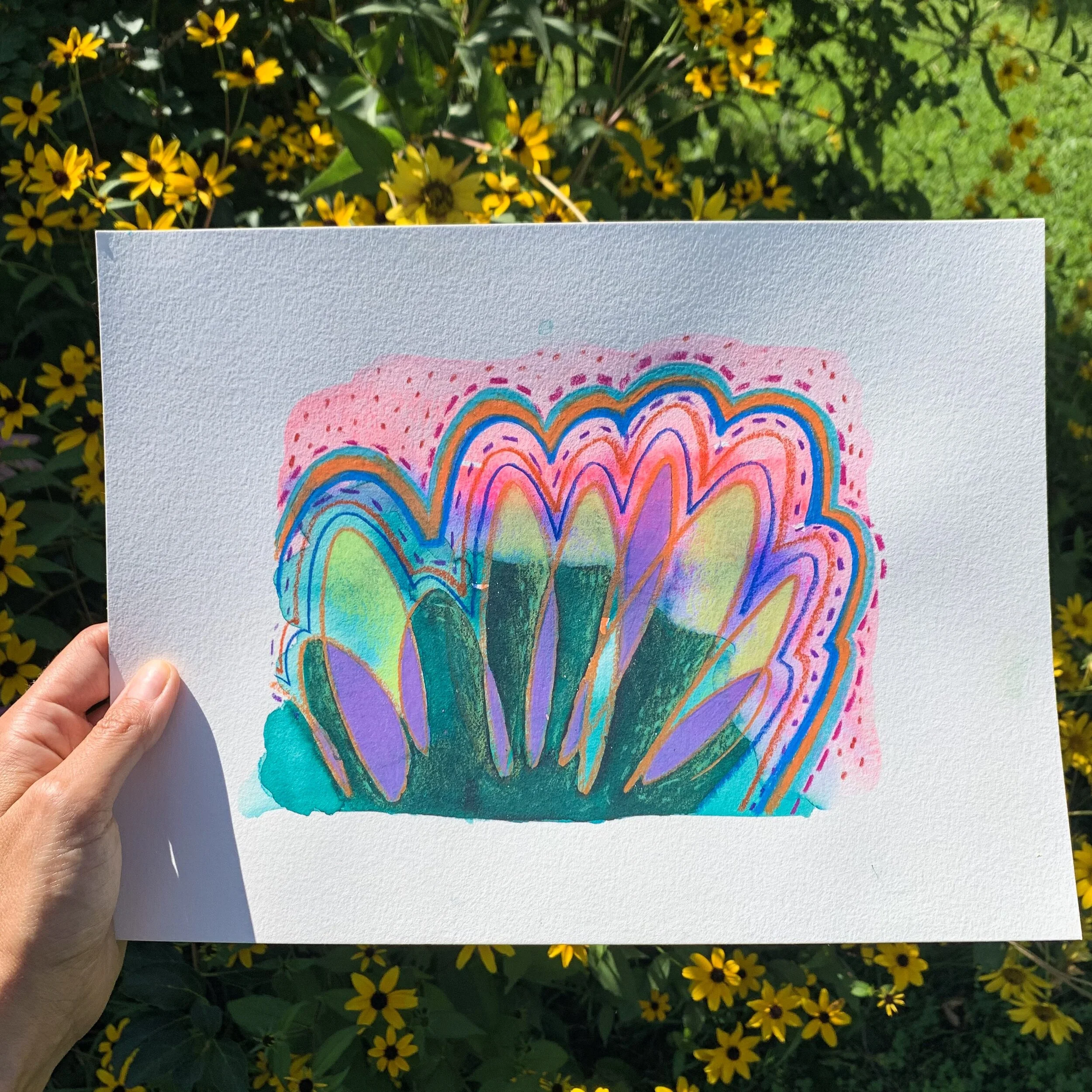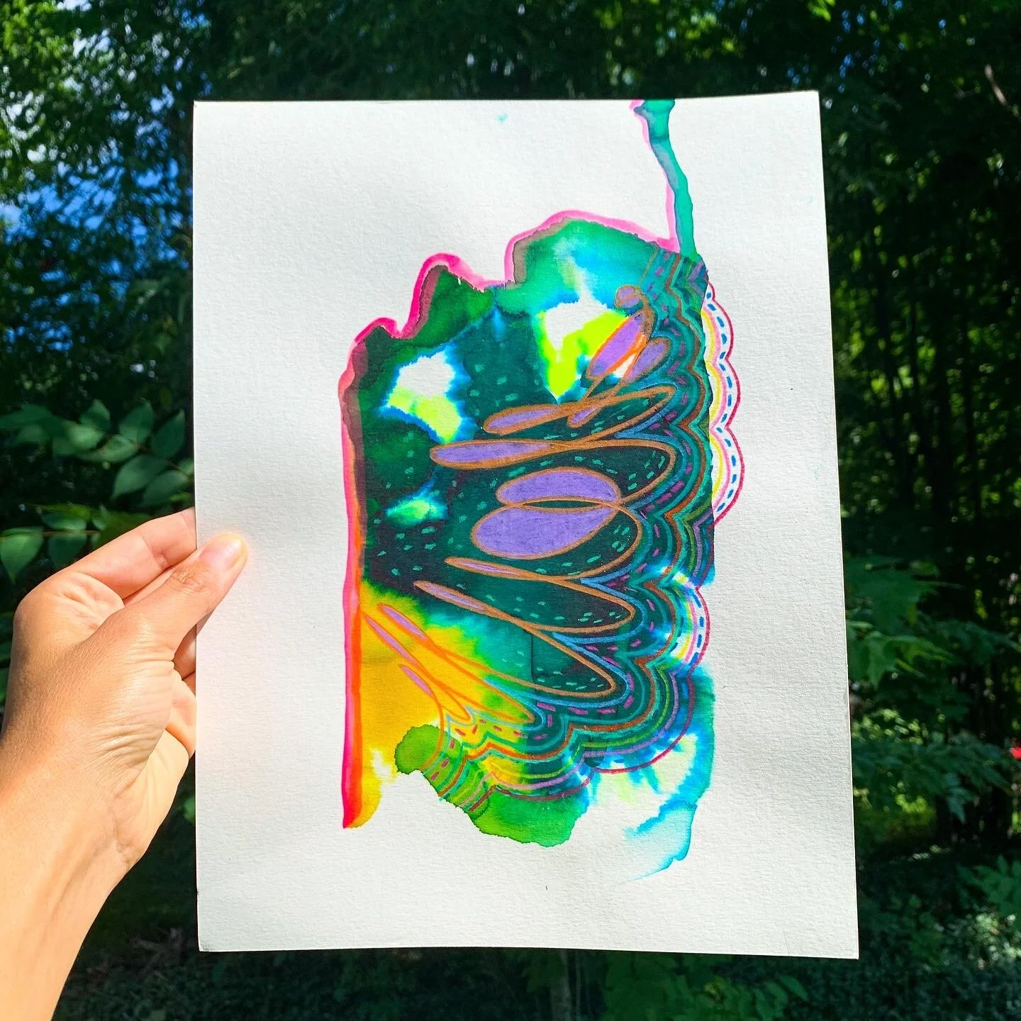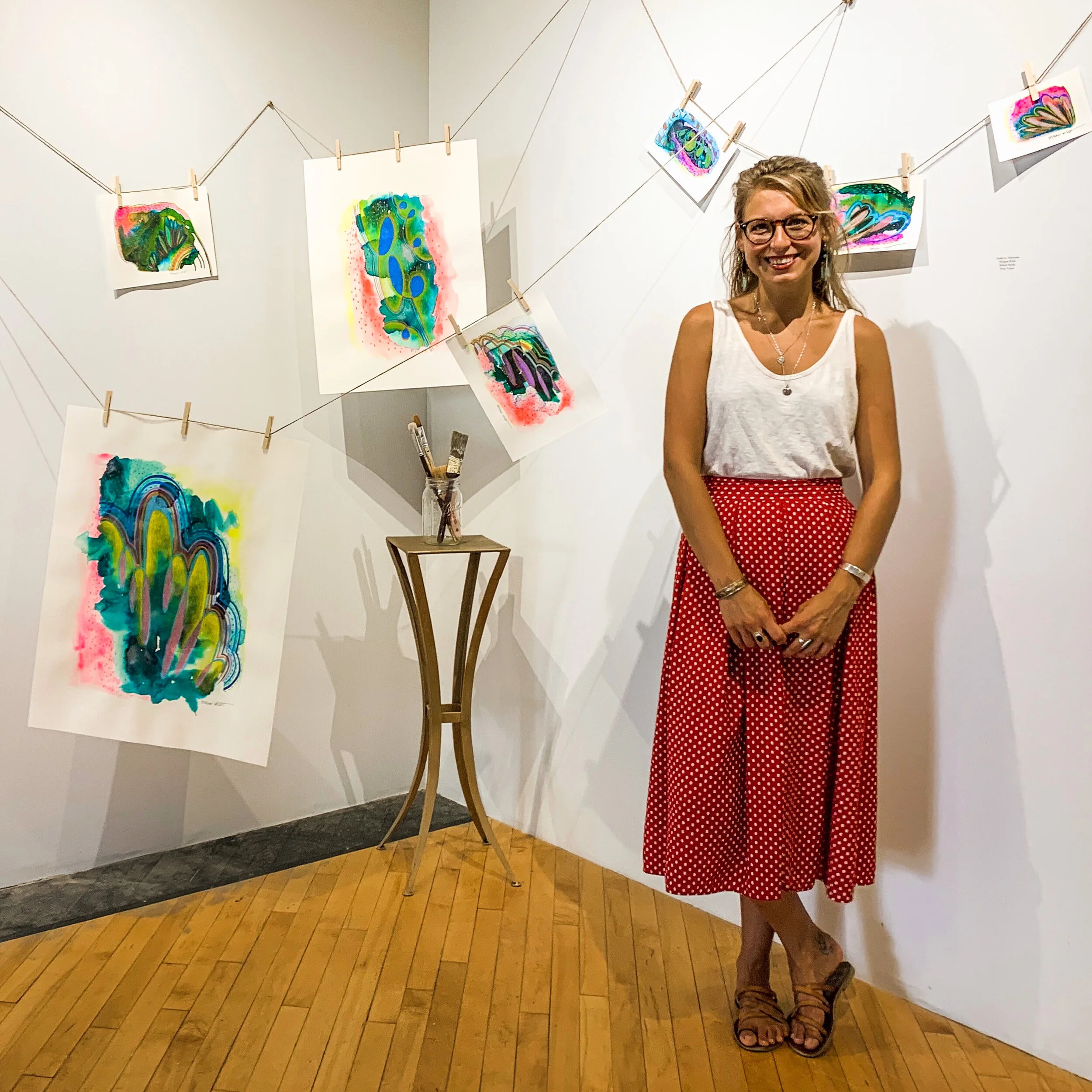 A series of paintings made during the 2020 pandemic. The isolation of quarantine was hard on everyone. I personally felt alone, fearful, powerless, and severe creative block. These free flow art pieces were a way to see beauty in the chaos and keep my art practice alive. A handful of them were featured in EastEnd Studio & Gallery’s Marshall Only Exhibit in 2021.